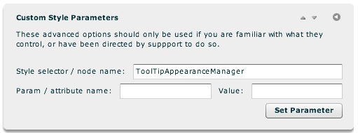 The following settings are most commonly used for the ToolTipAppearanceManager style selector: