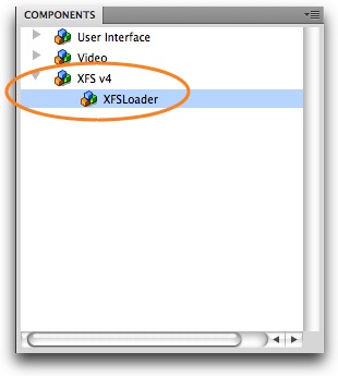 Restart Flash and open your FLA project. In the Components panel, locate the XFSLoader item in the new XFS v4 folder: